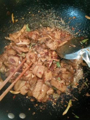 倒入酱油,翻炒几下,在放点豆瓣酱,不停的翻炒