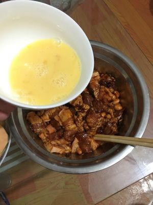 腌制好肉之后可打入一颗鸡蛋,加入适量的盐抓匀(可不加,看自己喜好)
