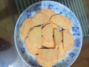 腌肉期间,西红柿榨汁或者去皮剁碎,胡萝卜切小碎块,洋葱切片垫底,山药切碎备用。