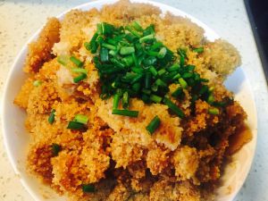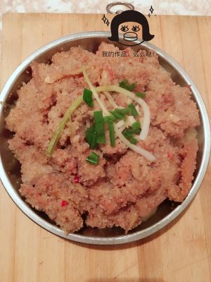 60分钟后,打开锅盖端出,放入少许葱花。一份香气扑鼻,肥而不腻的红薯粉蒸五花肉便完成了。是不是很简单啊,大家喜欢的可以尝试一下哦
