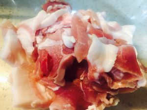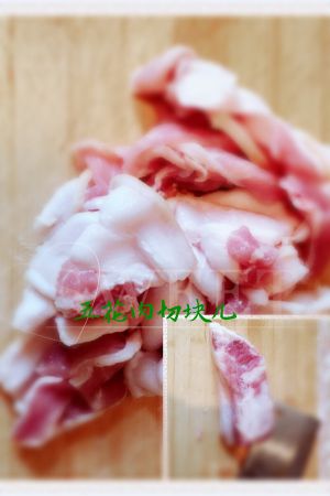 五花肉洗干净浸泡10分钟左右,把肉里面的血水浸泡出来再洗干净切片备用