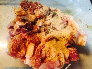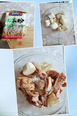 腌制10钟后加入蒸肉粉搅拌均匀后放在锅里隔水蒸20~30分钟,把肉蒸烂。