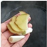 放两片姜,还有柠檬边角料,到点料酒,冷水浸泡,去血水,去腥味,投洗几遍,没有血水就好
