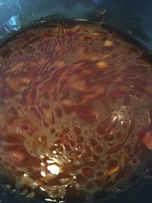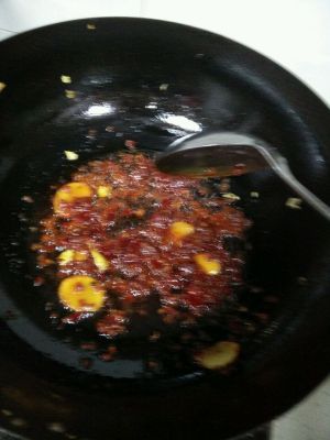 锅中加油,放入花椒粒和姜炒香,放入郫县豆瓣,小火炒出红油!