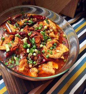 刷锅烧干放油,油热后放入压碎的麻椒和掰断的红辣椒炒香,趁热倒在盆里即可。