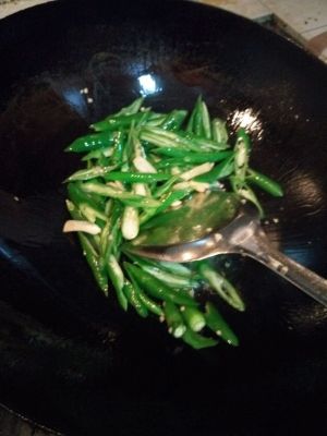 放入蒜白和辣椒