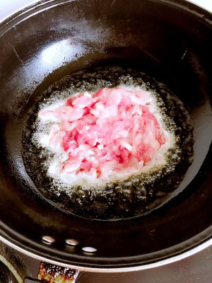热锅凉油,将肉下锅(切记下锅后不要立即去翻动肉片)