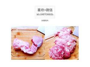 肉片片大片,用腌肉包腌制,加少许料酒、味级鲜、盐,腌制二十分钟。