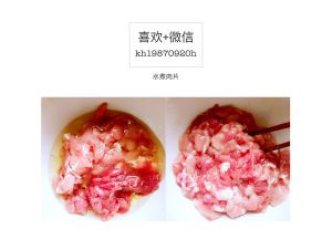 用少许盐,生油,鸡蛋清将肉拌匀