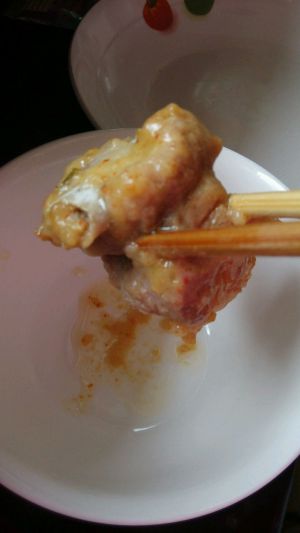 糯米粉倒入腌好的五花肉拌匀,放辣酱。