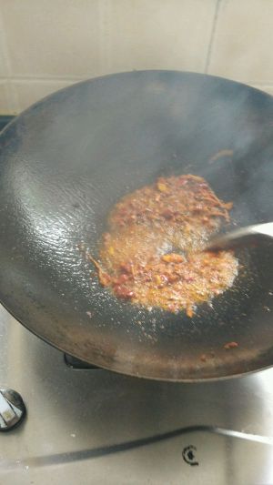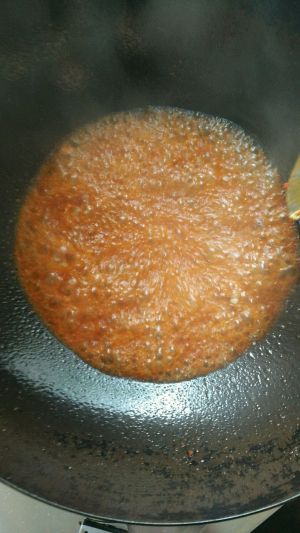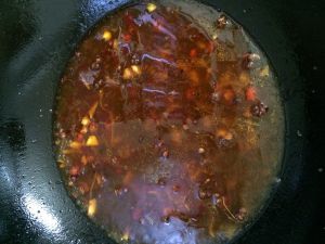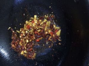 锅内放油,把花椒先爆香。再放入姜丝蒜末,红椒,炒,倒入豆瓣酱,加点水