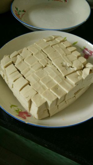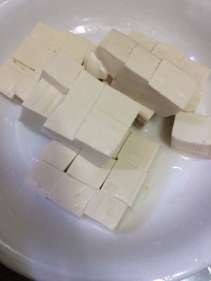 豆腐切块。大概两厘米左右。大了不入味。小了要碎