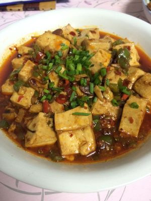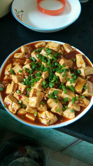 美味的麻婆豆腐就好了,起锅前淋入香油和花椒油,准备起锅