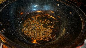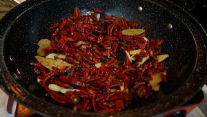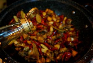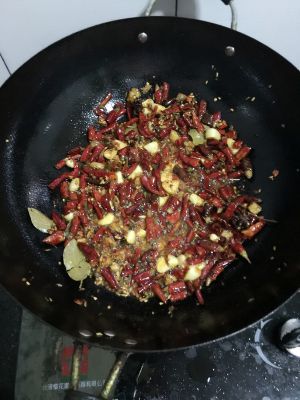 锅清洗干净,重新上油,放入干花椒小火炸出香味儿