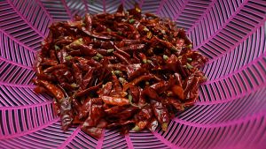 现在我们来剪辣子,稍微剪大一点,辣椒籽漏掉不要哦