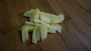 鸡切成稍微大一点点的块儿,等下炸完会缩小,我是切完之后用温开水全部冲洗了遍,切的时候会有碎沫血块,这样洗过就会利索一点儿
