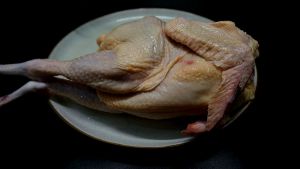 买一只三黄鸡,也就是嫩鸡,其实鸡腿也是可以的,上次我已经用过了所以啊这次就买了一整只鸡 一般买回来之后我会用姜汁儿腌制十五分钟。生姜加水打成汁儿 觉得麻烦的话料酒也可以