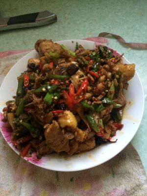 先把配菜放进锅里炒香,在放鸡丁进去,炒的差不多了过后放豆瓣!盐,鸡精等基本调料即可,简单易学!