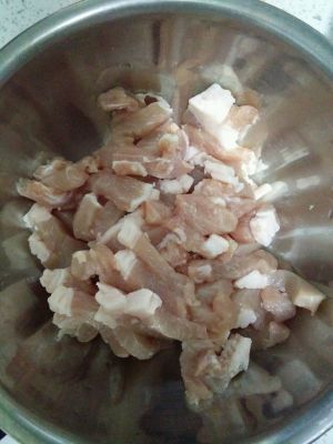 所有材料切细条,切碎备用。具体看图比较清楚,文字表达可能照应不到。