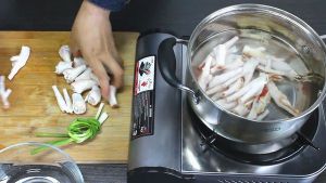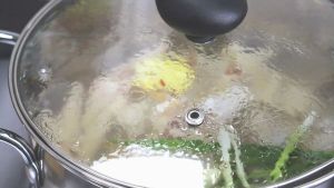 然后加开水 放入鸡爪 大火开后转中火煮15分钟