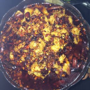 麻椒放到菜上,锅内放油,烧热淋到菜上