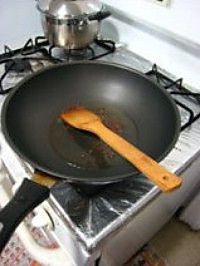锅底里倒一点油,油一定要少,放入鸡块翻炒,直到水分没了。盛出鸡块备用。
