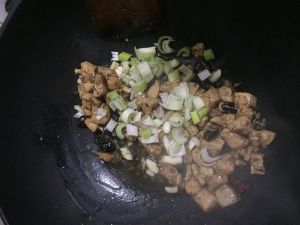 再起锅烧油,油热后加入腌好的鸡肉,炒至鸡肉断生,加入萝卜丁继续爆炒