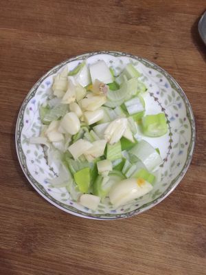 鸡胸肉切丁,黄瓜,胡萝卜切丁,腌制鸡胸肉(加一瓶盖料酒,一瓶盖42度白酒,两瓶盖生抽,一瓶盖藤椒油,一些淀粉,一瓶盖陈醋,一小撮孜然粒,一点五香粉)瓶盖的量就是其本身的瓶盖,腌制20分钟。