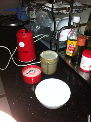 用酱油、老抽、料酒、蚝油、甜面酱、植物油腌制切片的五花肉大约30分钟。