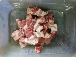 五花肉切成墩,带皮会更好次。要五花,瘦肉做这菜只会失败。