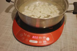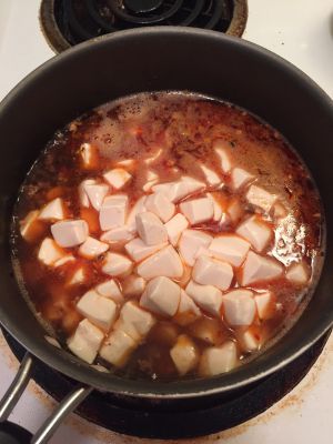 水烧开后放入豆腐煮2-3分钟,使豆腐更紧实