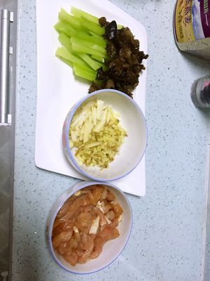 青笋切条,姜和蒜一比一切沫备用,这里的姜和蒜是一会儿用来调鱼香汁的。