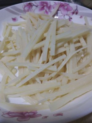 肉顺着纹理切丝,加少许盐,生粉,食用油抓匀备用
