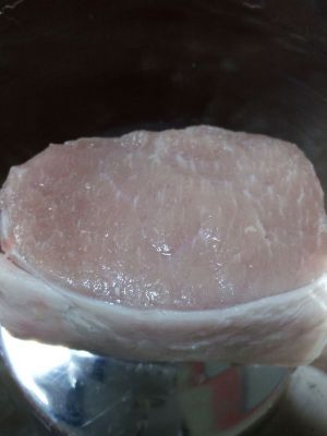 锅中注入植物油,热锅下油,微热后小火下猪肉翻炒至变色,盛出备用