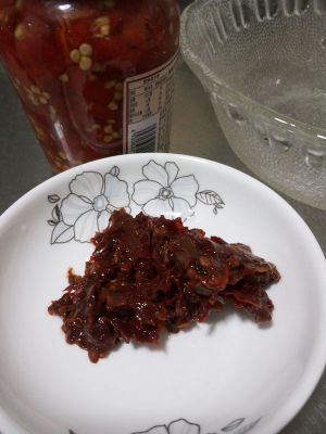 倒入鱼香酱,嘻嘻嘻这次直接用现成的啦,没有的可以参考看之前写的酸甜版鱼香肉丝食谱噢