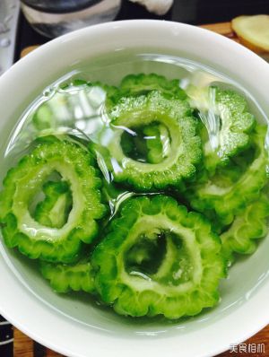 苦瓜适量,将苦瓜心子挖干净泡水20分钟。去苦水后留用。