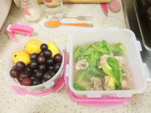 我放的是生菜,我是每天晚上做好第二天中午的午餐,煮的时间比较短。因为第二天在公司还要加热。时间根据食材来决定。一般控制在30分钟内就可以!排骨用酒烧过会非常嫩!