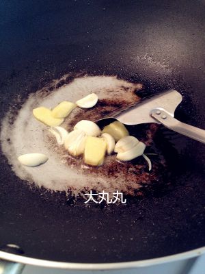 起油锅,炒香蒜片、姜片。
