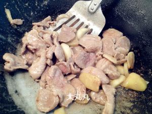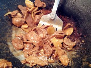 宽点油,先炒葱蒜姜,再下肉炒,中火。