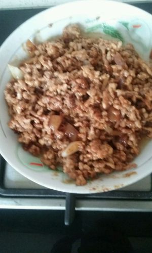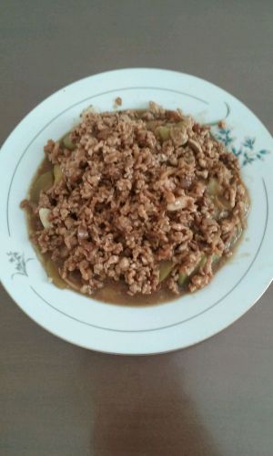 热锅凉油将蒜片,姜丝煸出香味后,肉沫放入锅内翻炒,肉沫颜色发生变化后将甜面酱放入适量,继续翻炒几下即可装盘备用。