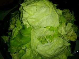将包菜加入,再加盐,还有酱油调味拌匀。
