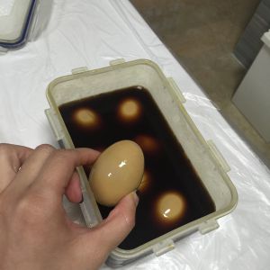 我是事先将煮熟去壳的鸡蛋,用自制卤水(老抽,生抽,料酒,八角,肉桂,姜,蒜,冰糖,盐,五香粉,香叶)烧开后小火煮15-20分钟,然后浸泡着备用
