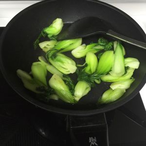 少于油,将青菜稍微煸炒一下,撒一点盐
