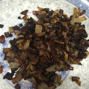 捞出洋葱碎 切碎些备用 葱油留着下次做饼用