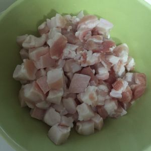 五花肉切成直径5cm的小丁