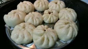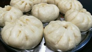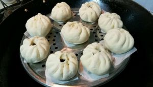 用油纸铺垫在包子下面,放入蒸锅发酵多10分钟,开火。