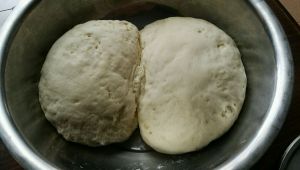 接着揉成光滑的面团,盖上保鲜膜发酵至两倍大。 室温发酵一般45分钟左右,天气较冷时需要适当延长时间。
