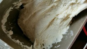 揉面发酵程序自动停止后是这样的状态,面呈蓬松发酵状态。