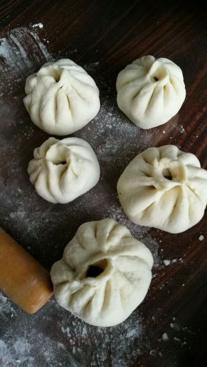 发酵好的面团分成50g若干份,用手或擀面棍压扁,包入已煮好的叉烧,拧成自己喜欢的花样后,放入已煮沸水蒸锅中,15分钟后关火,焖3分钟就可以开盖了。
