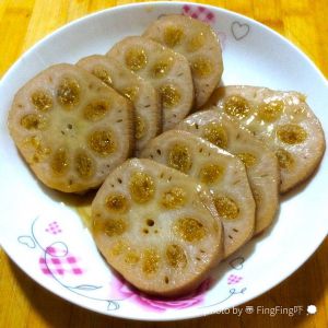 撒入适量干桂花继续焖煮1小时后。捞出藕冷藏后切片。锅里的糖水继续大伙烧至黏稠(如果家里有藕粉,这个时候加一勺,会让糖水更粘稠剔透),冷却后浇到藕片上即可。